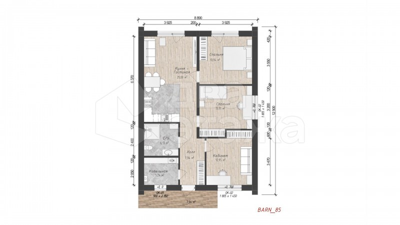 • Общая площадь 85 м2