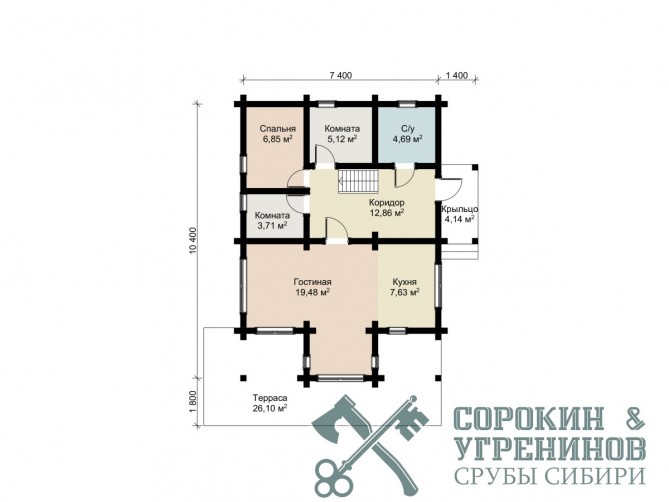 Индивидуальный проект дома из лафета сечением 250х350мм, площадь дома 153м2. Размер сруба 7;4х10,4 метров. Два этажа, второй мансардный. Скромная планировка дома, небольшие две комнаты на первом этаже, гостиная, санузел, прихожая и веранда, и две маленькие комнаты на мансарде. Этот домик может быть отличным украшением любого участка и для любимых гостей.