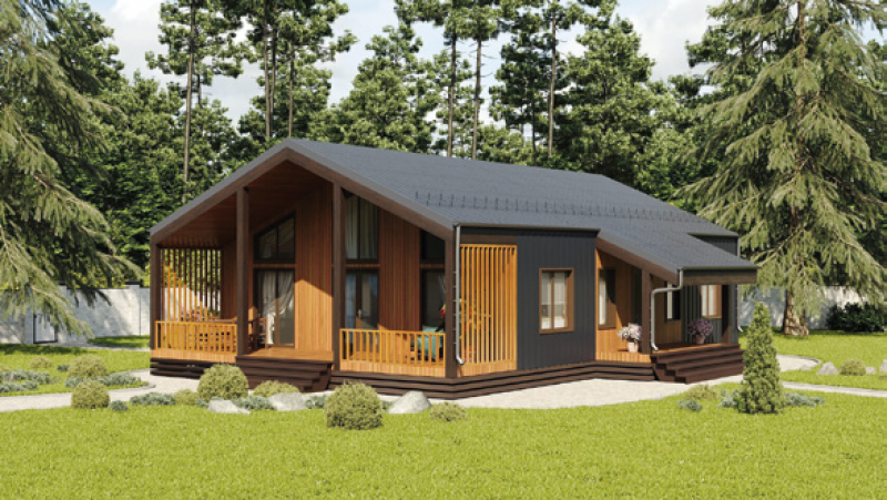 Каркасная технология PREFAB. Доставляют на место стеновые панели, собирают за 5-7 дней.